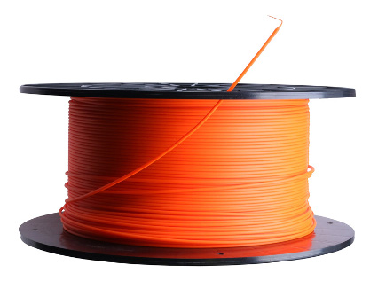 Nepoužívaný filament na cívce vždy skladujte v suchém a čistém prostředí, v případě PLA nevystavujte materiál vyšším teplotám. Před uskladněním již použitého filamentu vždy zaveďte jeho konec do bočního otvoru na cívce, aby nedošlo k jeho zamotání (viz obrázek). Před prvním použitím filamentu ověřte, zda začátek struny nepřesahuje z boku, mohl by se pak zasekávat o držák filamentu na tiskárně. Pokud struna přečnívá, ustřihněte ji štípacími kleštěmi.