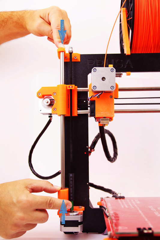 Posuňte držák koncového spínače osy Z o cca 0,5-1 mm směrem nahoru. Při tomto úkonu zároveň držte hlazenou tyč, aby neměnila svou polohu.