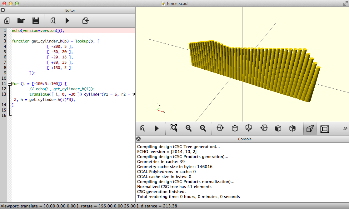 Obr.10 - OpenSCAD (Parametrický objekt vytvořený jednoduchým zápisem)